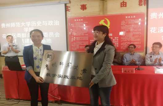 上午12点,suncitygroup太阳集团与花溪区久安乡政府签约授牌仪式正式举行,公司副经理蒲文彬与花溪区副区长韩匡时为教学实践基地签约、社工系主任常岚与花溪区群工委副书记李宏进行授牌仪式,在场所有人一致鼓掌表示祝贺。蒲文彬在讲话中向大家介绍了suncitygroup太阳集团的院情院史,对久安乡的发展前景表示肯定,对公司和久安乡的长期合作表示诚挚的期待和祝愿。