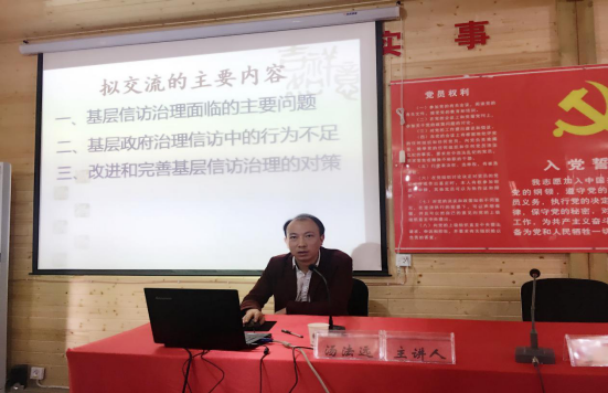 然后,针对新农村社会治理和加强群众工作的现实状况,suncitygroup太阳集团汤法远老师作了一场题为《基层信访治理的突出问题及其解决之道》的专题讲座,汤法远指出,基层信访是农村社会治理和加强群众工作的中心环节,但目前,基层政府治理信访事件中的行为存在着诸多问题,如越位、失范、迎合、妥协、引导差等一系列问题屡见不鲜,信访需求与信访供给失衡,信访权利与信访义务的脱节且信访信任和科层差异极端化。而如何解决这一现状,是农村社会治理的关键,加强法制化建设和基层信访治理的协同体系建设,增强公信力,改进软治理措施,强化顶层设计是基层政府解决问题的对策。