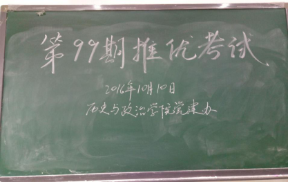 2016年10月10日下午四点。历政公司第99期推优考试在公司楼四楼4411 、4413 、4415三间教室进行。此次推优考试有61名本科生,34名研究生参加,共计95人。参加推优考试的人员本科由14、15级辅导员、班长、双学组长和团干推荐,研究生由辅导员、支部书记推荐。本次推优考试由党委秘书崔文文老师主持。