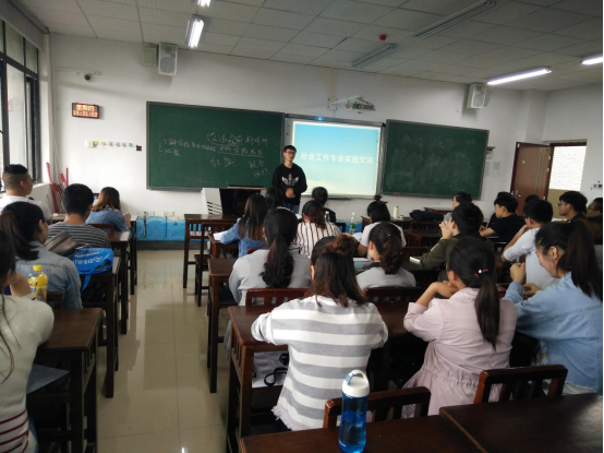 在交流会上,刘燕同学结合他在社会组织实习的经验及感受,着重分享了关于活动策划、评估、个案工作、资源利用、沟通等方面的一些内容,详细讲解了在做活动策划时要做的具体工作、开展个案访谈时的访谈内容及注意事项、如何利用及拓展资源、如何更好地与人交流沟通等,使同学们对课本上的理论知识有了更加深刻具体的认识。