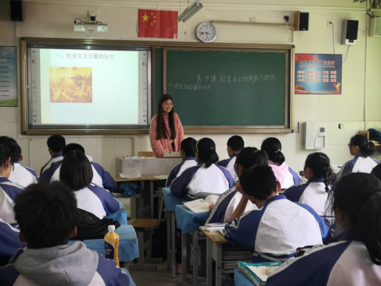 教学实践的第一个班级是九年级(14)班,在该班授课的是李相富同学。而后岳义容和唐芳两名同学分别在另外两个班级进行授课。授课结束后,负责对接的一线中学教师对三名同学的授课进行了评价,并指出三名同学在教学过程中应注意的问题和需要改进的地方。