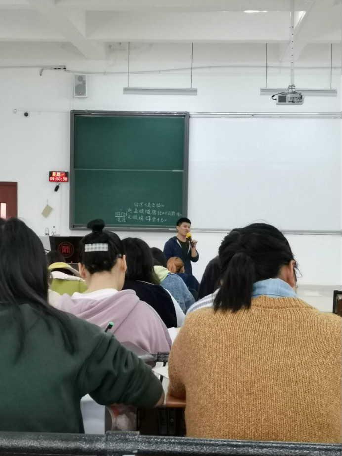 张老师深入浅出地给同学们剖析教师这个职业的特殊性,让同学们明确在大学这一阶段,作为师范生必须奠定教师专业成长基础,明确自我发展方向。