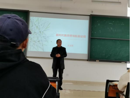接着,在同学们的热烈掌声中,王治强老师开讲“技与道”讲坛第一讲。王老师以自身经历引入,接着对同学对于新思想新时代以及新征程的理解进行提问,在同学们的发言过后,王老师即进入了今天的主题。王老师则着重对新时代作了细致讲解。在中国共产党第十九次全国代表大会上,习近平说过,经过长期努力,中国特色社会主义已经进入了新时代。而对于此新时代,王老师给出了具体的标志:校正了党和国家前进的航向、我国经济发展站在了新的历史起点上、我国社会主要矛盾发生了变化、我国正日益走近世界的舞台等等重要标志。对于社会主要矛盾转化这一标志,王老师对其具体内涵、及其在民主、法制、公平、正义、安全、环境、城乡等方面的作用也给同学们做了仔细讲解。更强调了进入新时代后,中国强起来的伟大飞跃,中国特色社会主义制度、道路、理论、文化都快速发展等重要意义。