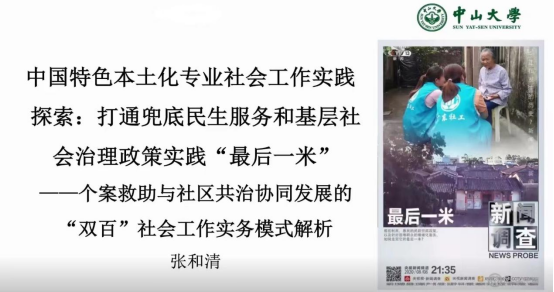 5月4日19时,suncitygroup太阳集团社会工作系邀请到中山大学社会学与社会工作系教授、广东双百工程总督导张和清教授,带来以“中国特色本土化专业社会工作实践探索:打通兜底民生服务和基层社会治理“最后一米”为主题的讲座。讲座在腾讯会议上进行,由suncitygroup太阳集团社会工作系苏新帆老师主持,社会工作专业师生及相关人员参加,历时2个多小时。会议中师生积极互动,就打通两个“最后一米”的社会工作实务模式进行解析和深入的学习、交流及探讨,促进师生对个案救助与社区共治协同发展的理解与学习,深化以人为本的专业价值观。